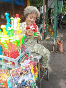 Cũng chính cái nghề này đã giúp bà bươn chải cuộc sống, nuôi con khôn lớn. Và cho đến bây giờ con bà đã lớn, có gia đình riêng, bà cũng đã đến tuổi xế chiều nhưng bà vẫn tiếp tục công việc bán đồ chơi dạo trước cổng Thảo Cầm Viên.