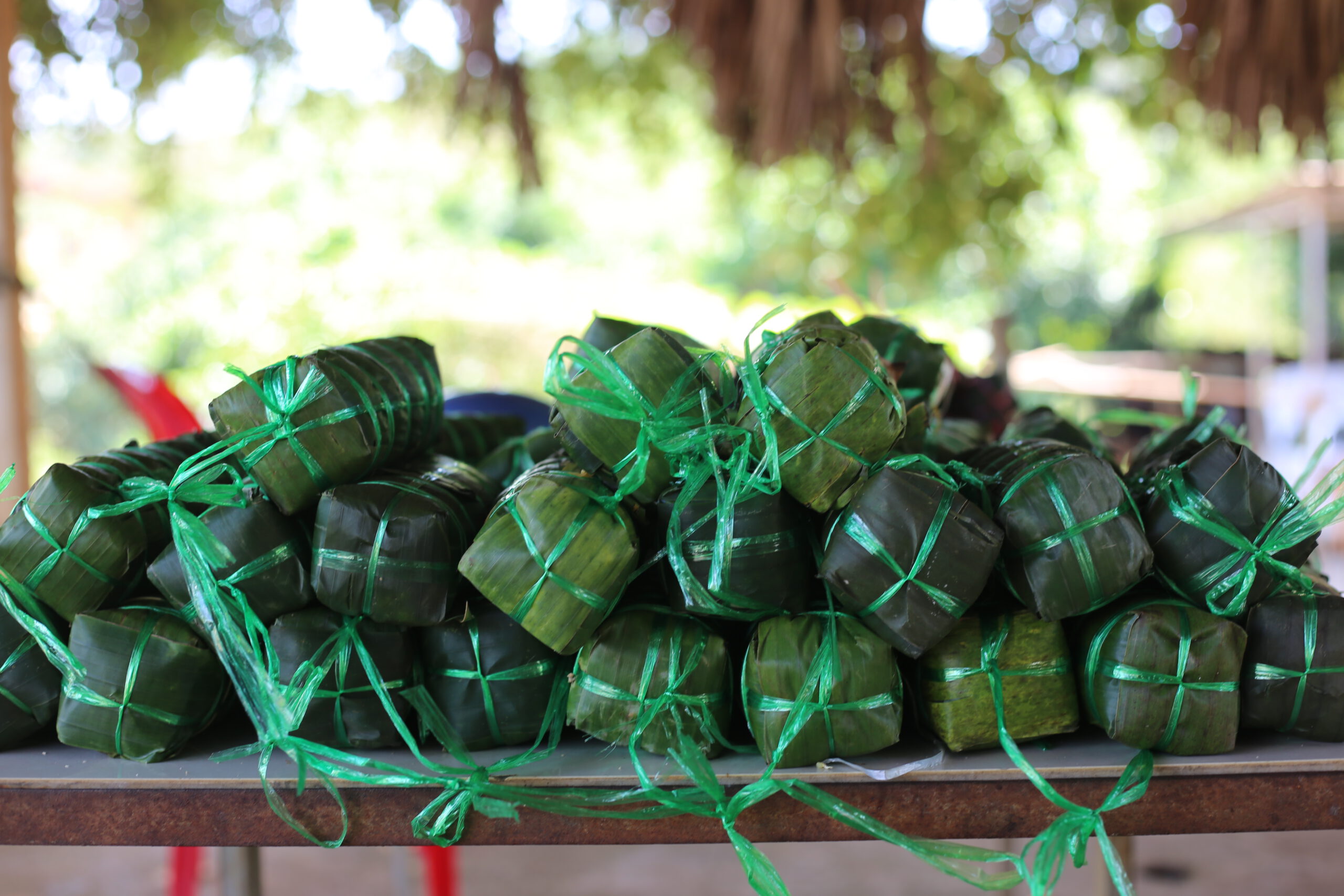 Tôi và những đứa em nhỏ thì cùng phụ ông bà lau khô những tàu lá chuối được rửa trước đó để gói bánh. Tôi được bà chỉ cho cách lau lá cho thật sạch đó là lau theo đường nét của lá, sau đó lại quệt thẳng một đường vuông góc là xong. Bố tôi cùng các chú thì lo chuẩn bị việc đốn củi, chuẩn bị nồi nấu sẵn sàng.
