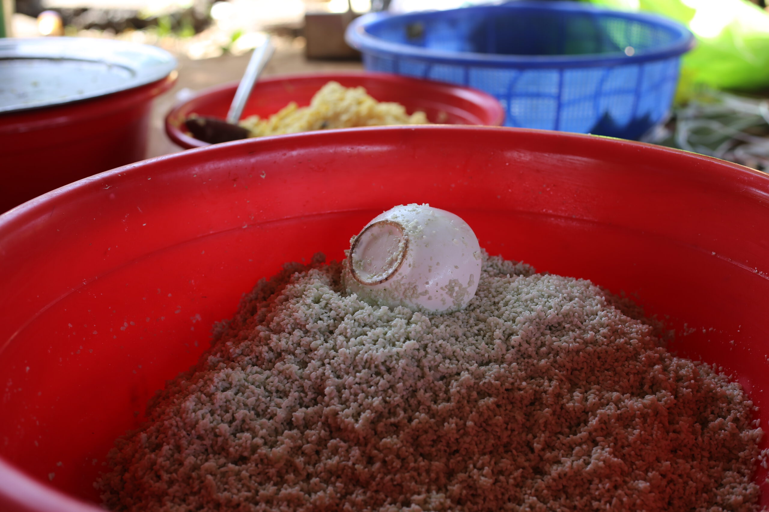 Gạo nếp được mẹ vo thật sạch rồi để ngâm khoảng 2 tiếng cho nở ra. Ảnh Thùy Dương