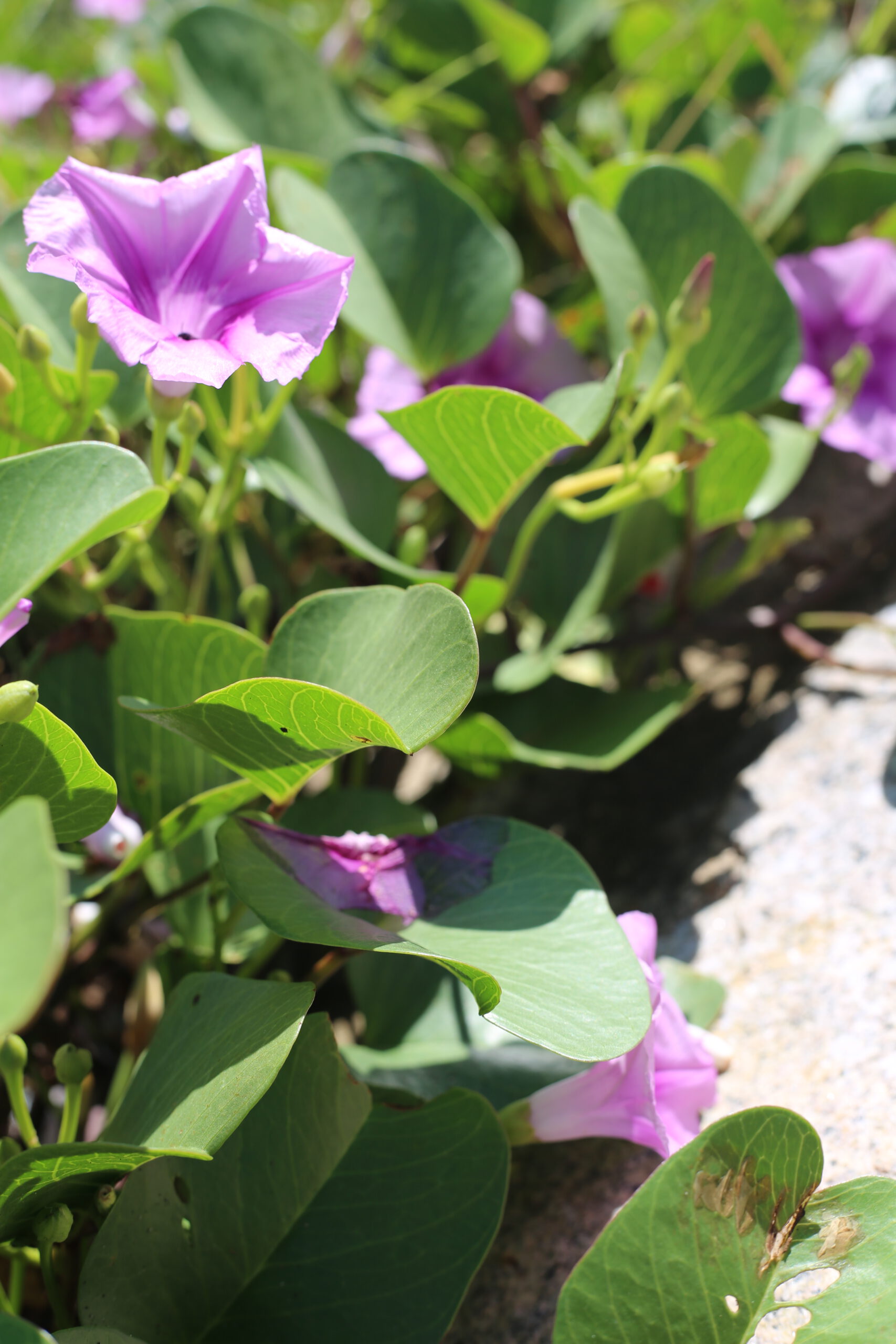 Loài hoa này mọc theo nhóm, thân nối tiếp thân trải dài từ bờ miên man đến gần chân sóng. Gió biển đi qua cánh hoa rung chuyển dập dờn đung đưa. Những chiếc lá xanh có hình trái tim cũng rì rào đảo đưa theo nhịp gió, tất cả khung cảnh như tái hiện lại câu chuyện tình lãng mạn nhưng đầy đau thương ngày nào.