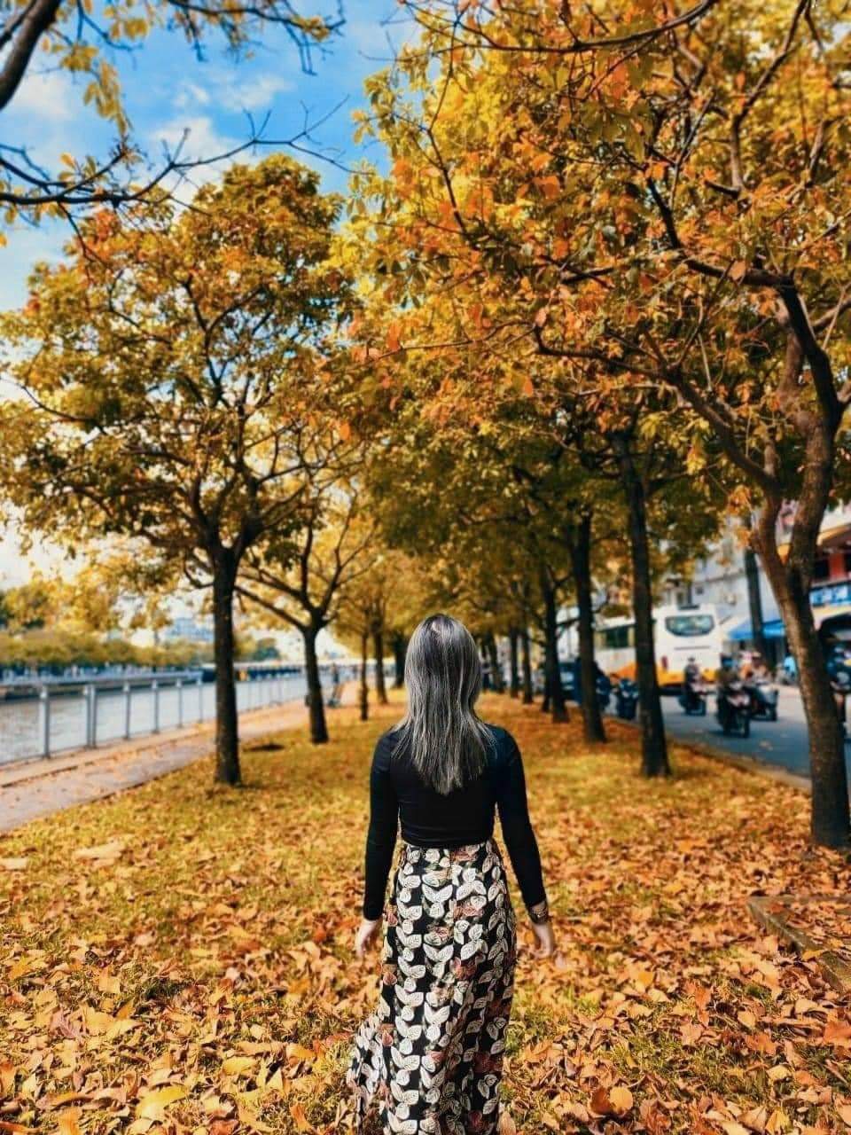 Cung đường Hoàng Sa đầy lá vàng, thật biết bao thơ mộng như bầu trời Tây giữa Sài Gòn. Ảnh sưu tầm mạng xã hội.