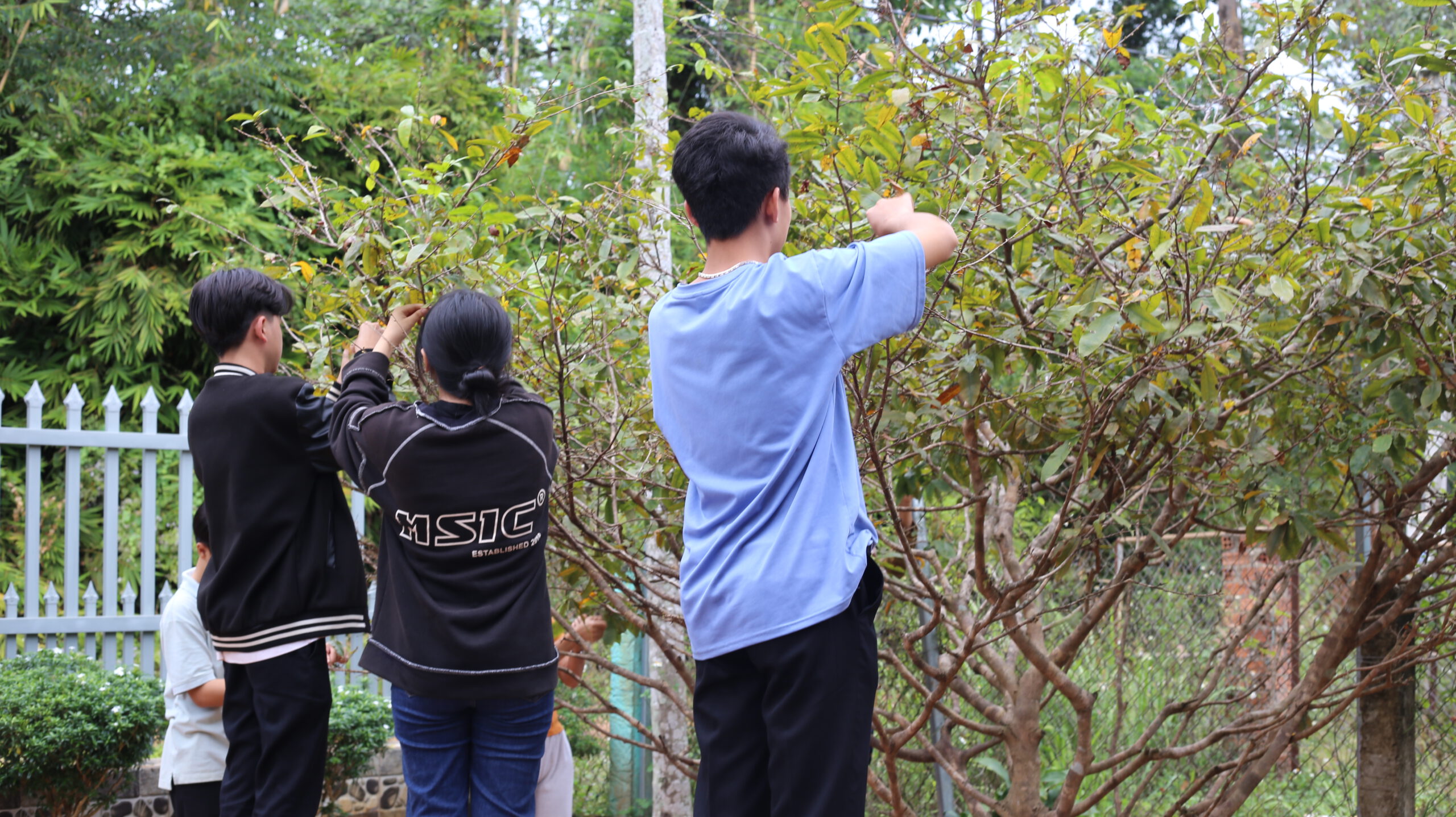 Khi tuốt lá mai chúng ta phải thật cẩn thận, ẩn sau lớp lá những chồi non đã nhấp nhé vươn lên, lỡ tay có thể làm rơi nụ, hoa cũng vì thế vơi bớt đi. Ảnh: Thùy Dương